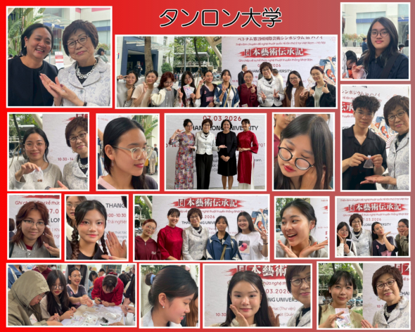 R8年3月6日(金)ハノイ大学・7日(土)タンロン大学 ベトナムのハノイ大学とタンロン大学において《ベトナム第2回国際芸術シンポジウム》が開催され、文化交流の一環としてアクセサリーのワークショップをさせて頂きました。日本から あこや真珠、天然石など持参し、ネックレスやピアスなどを学生の方達や先生方と楽しく制作し、親睦を深めました。ハノイ大学のグエン・ヴァン・チャオ学長より賞状を頂きました。 とてもすばらしい経験をさせて頂きました。 ありがとうございました。 Update: 2026.02.15